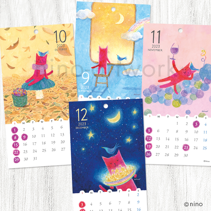 毎年、カレンダー用に絵を描き下ろしています。その絵を使ってポスターやポストカード、フレークシールなどを作り販売しています。
